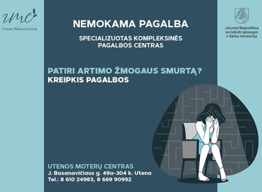 Utenos moterų centras, kaip specializuotas pagalbos centras, teikia nemokamą informavimo, konsultavimo, psichologinę ir teisinę pagalbą asmenims, patyrusiems smurtą ar patiriantiems pavojų artimoje aplinkoje Utenos, Molėtų, Ignalinos, Zarasų ir Visagino savivaldybėse.